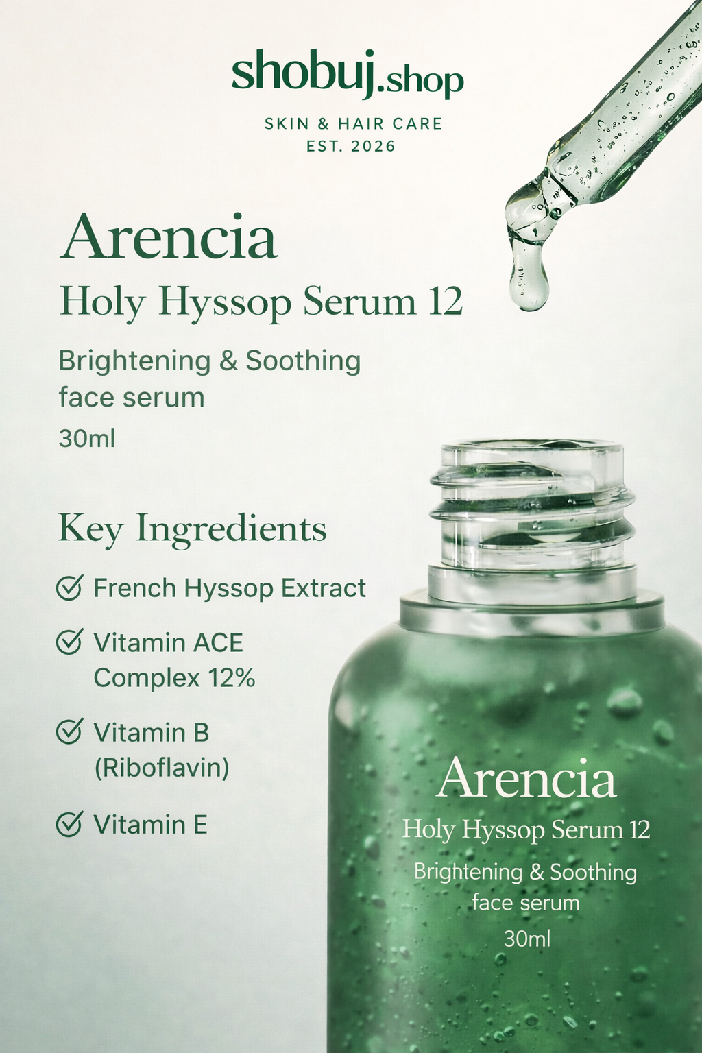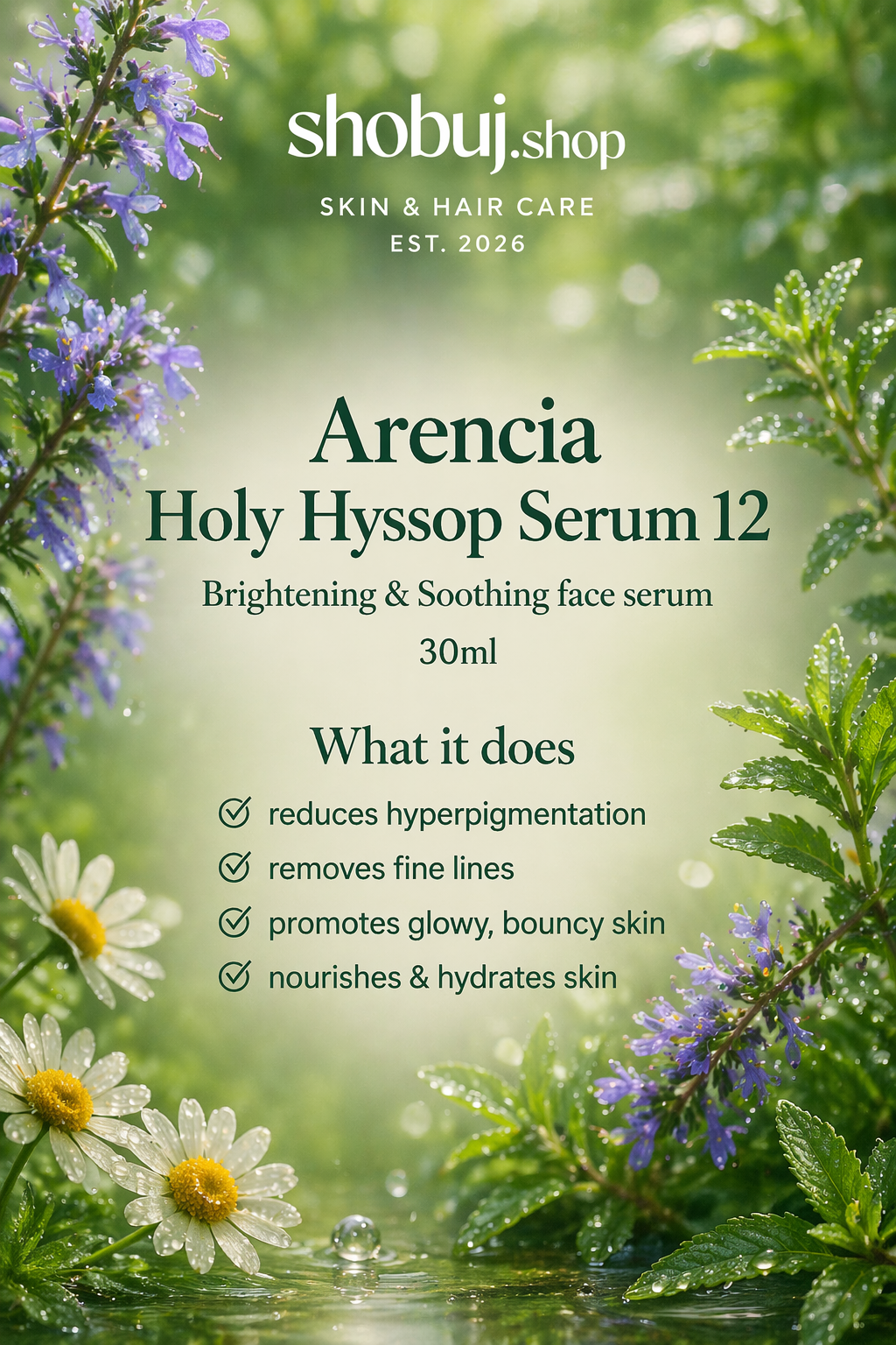 Arencia Holy Hyssop Serum 12 Brightening & Soothing face serum 30ml