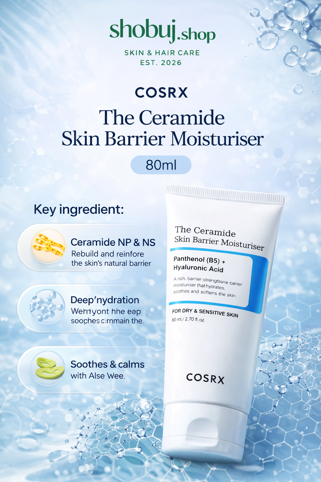 A deeply nourishing moisturizer designed to repair and strengthen the skin barrier using a powerful blend of 7 ceramides, cholesterol, and fatty acids. It delivers long-lasting hydration while protecting the skin from dryness and irritation.