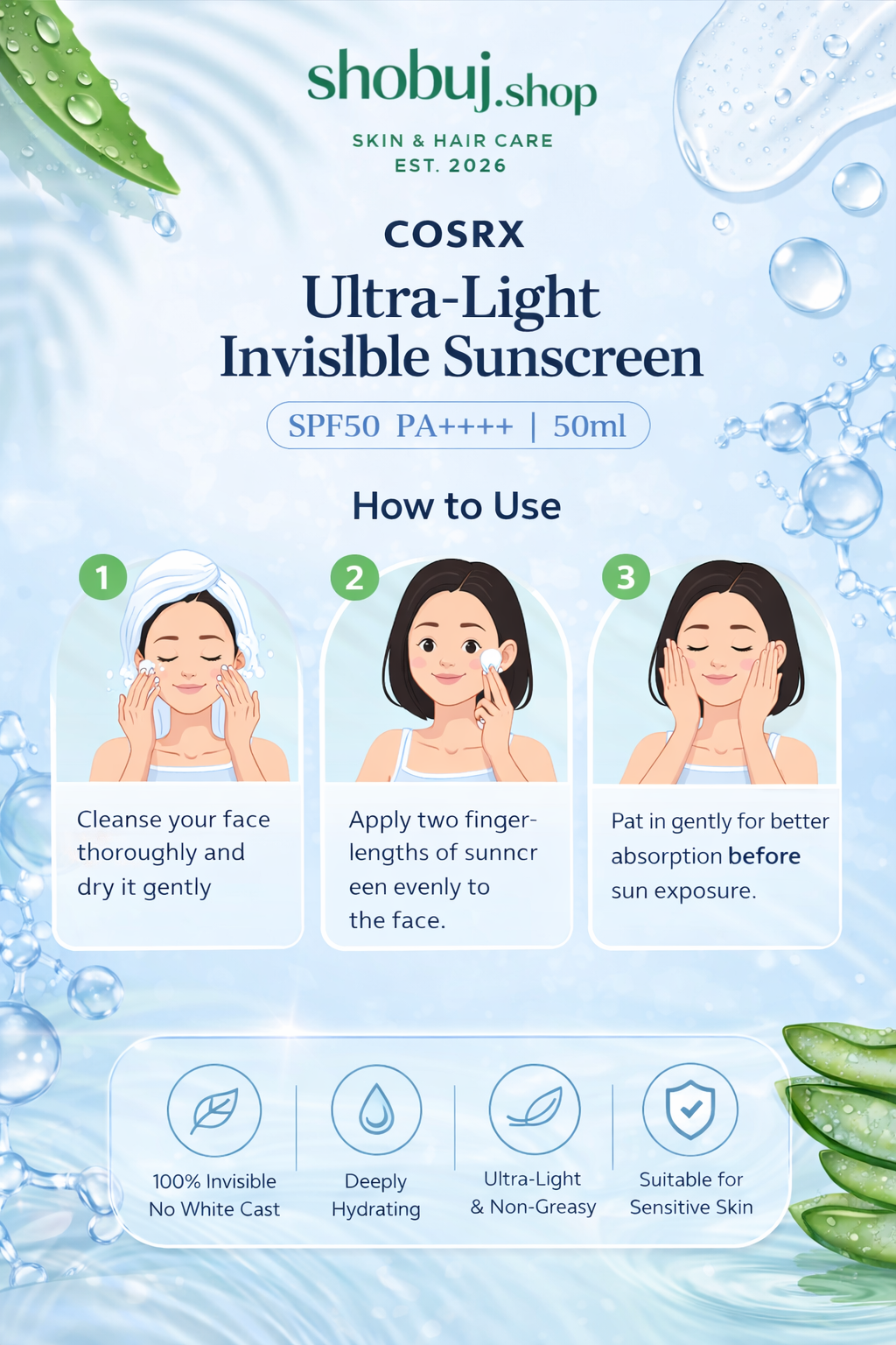 Ultra-light, non-greasy, fast-absorbing texture