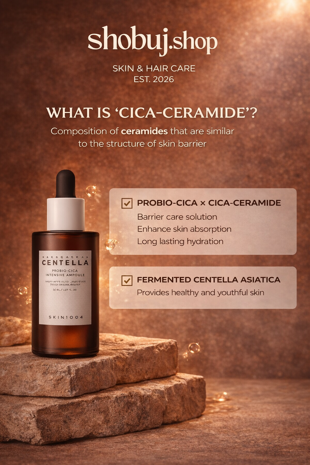 A highly concentrated ampoule formulated with fermented Centella (Probio-Cicaâ„¢), ceramides, and peptides to deeply hydrate, soothe irritation, and repair the skin barrier. It helps calm redness, improve elasticity, and restore damaged or sensitive skin.